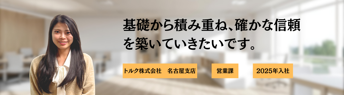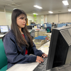 職場はとても雰囲気が良く、先輩方は皆さん優しく、分からないことがあればいつでも質問しやすい環境です。「いつでも、どんなことでも聞いてね」と声をかけてくださるため、不安を一人で抱え込むことなく、安心して仕事に向き合うことができています。業務は一人で完結するものではなく、業務担当・営業・物流など、さまざまな部署と連携しながら進めていきます。日頃から情報共有や声掛けを大切にしており、自然と協力し合える関係が築かれていると感じます。そのため、自分の担当業務だけでなく、全体の流れを意識しながら仕事に取り組める点も、この職場の魅力の一つです。 見積作成から受注処理、出荷まで一連の業務に関わる中で、どの工程であっても「自分の仕事」として責任を持って対応したいという意識が強くなりました。 一つひとつの経験を積み重ねながら、チームの一員として信頼される存在を目指して、日々成長していきたいです。